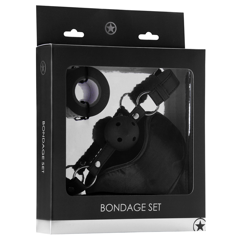 MATERIAL:Poliéster, Piel, PVC, ABS.DESCRIPCIÓN:Inicíese o disfrute de las maravillas del mundo BDSM del mejor modo posible. Este kit reúne todo lo necesário para tener una experiéncia fantastica. El suave antifaz le dejará más susceptible a caricias, la mordaza respirable va a silenciar sus gemidos y la cinta bondage no adherente va a permitir que el maestro decida en que posición el sumiso se quedará. OUCH! ¡tiene todo para dominar o ser dominado!Incluye: Antifaz, Mordaza y Cinta Bondage.COLOR:Negro.