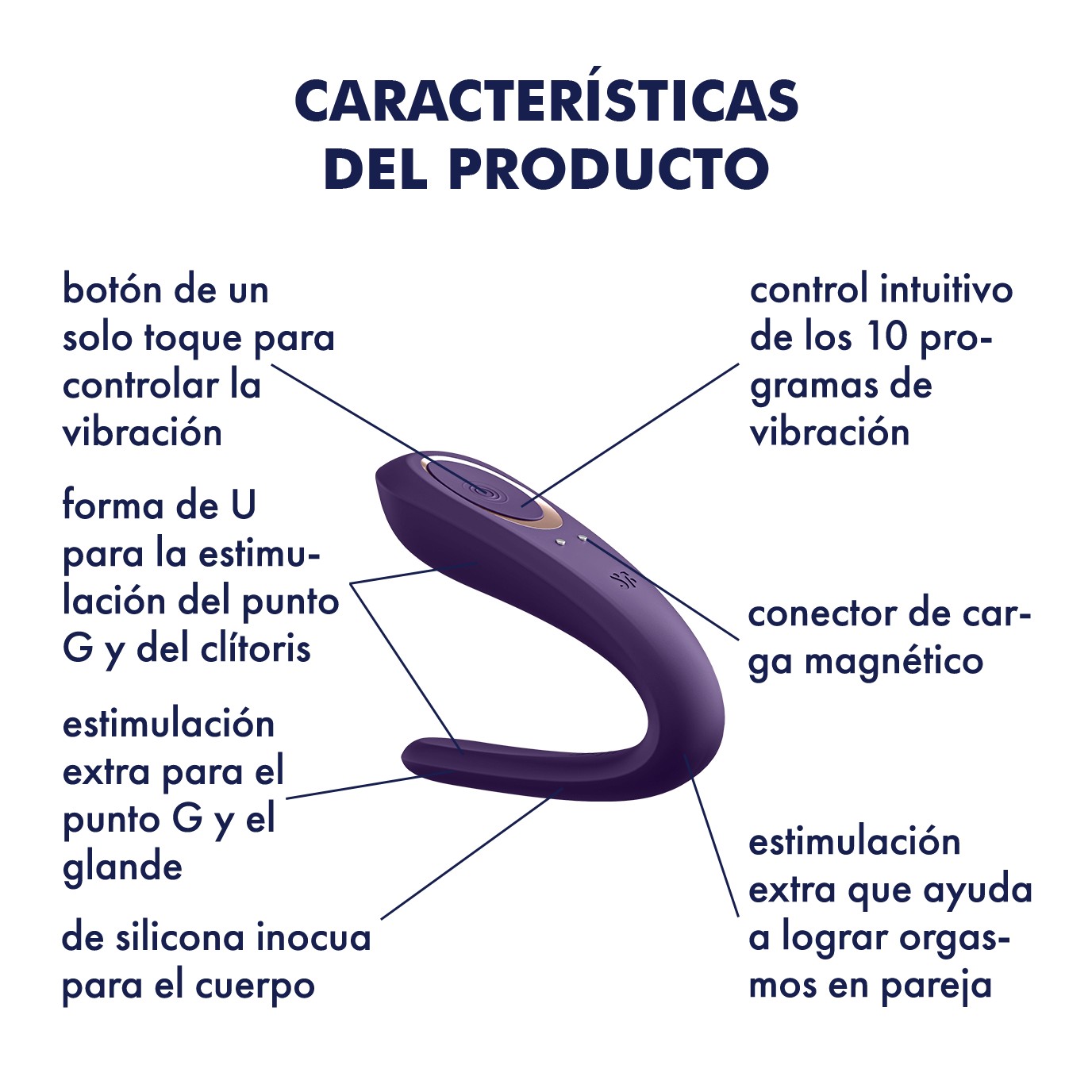 MATERIAL:Silicona, ABS.DESCRIPCIÓN:El DOUBLE CLASSIC fue creado para darle todavia más placer a las parejas. Su formato ergonómico, suave y sedoso, proporcionará una estimulación intensa del clítoris y va a masajear el Punto G. El vibrador DOUBLE CLASSIC cuenta con 10 modos de vibración. Y es recargable a través de la conexión USB. La silicona es de grado médico y flexible, es 100% impermeable y aún libre de ftalatos.DIMENSIONES:10 cm de largo.COLOR:Morado.